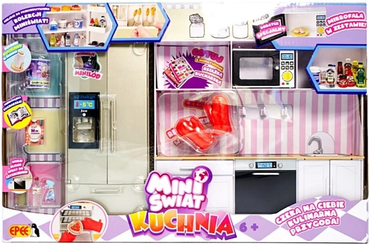Kuhinjski set MiniWorld poleg opreme vključuje tudi miniaturne dodatke, ki bodo vašega otroka popeljali v resnični svet kuhinje v miniaturni izvedbi. Igra z MiniWorldom razvija njihovo domišljijo, spretnost in jim omogoča, da se osredotočijo na ustvarjanje lastnega sveta.
