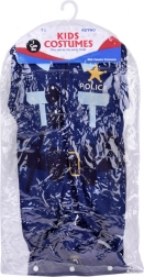 Prisrčen in realističen otroški policijski kostum za pustne zabave, karneval in igro doma. Set vključuje moder kombinezon s potiskom in čepico, ne manjkajo niti lisice za še več zabave. Zahvaljujoč enostavnemu oblačenju in udobnemu materialu bodo otroci uživali v obilo kreativne igre POLICE in lovljenja tatov.