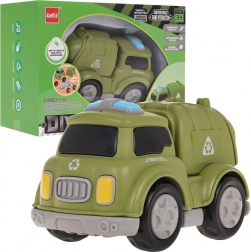 Interaktivno smetarsko vozilo otrokom prinaša veselje in nova spoznanja. Izdelano je iz kakovostne plastike in opremljeno z zvočnimi učinki, kot so zvoki vožnje, vesele melodije in otroški smeh. Svetlobni učinki vključujejo utripajoče barvne lučke na strehi vozila.