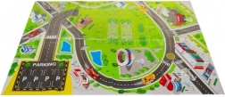 V kompletu je podrobna podloga z načrtom mesta, prometni znaki, 2 avtomobilčka in helikopter – pripravljeno za takojšnjo igro.