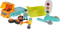 Del seta je interaktivni semafor s svetlobnimi (rdeča, rumena, zelena) in zvočnimi učinki (melodije, hupa, zagon motorja, alarmi), ki skozi igro uči prometne situacije. Dva izvijača pomagata otrokom razstaviti avto na dele in ga spet sestaviti – tako razvijajo fino motoriko, potrpežljivost in tehnično razmišljanje.
