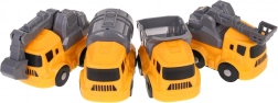 Bager, vozilo z roko, prekucnik in cisterna, dopolnjeni s prometnimi znaki, zapornico in kroglicami za še raznolikejšo igro.