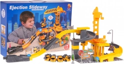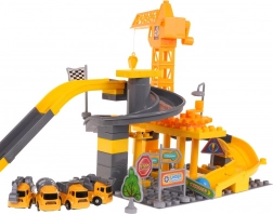 Gradbeni set gradbišče otrokom prinaša svet poln gradbenih dogodivščin. Z izstreljevalnikom se vozila ali kroglice zapeljejo po zabavni progi, medtem ko žerjav z vrtenjem za 360° pomaga premikati tovor. Vse je izdelano iz trpežne, kakovostne plastike v privlačnih barvah, ki takoj pritegnejo pozornost.