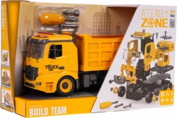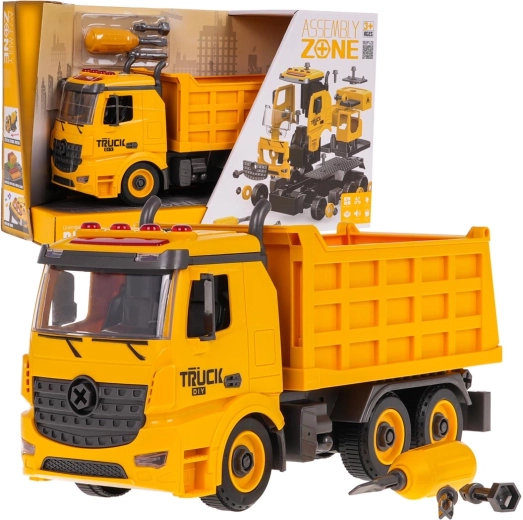Zabavna in poučna igrača za male graditelje: razstavljivi tovornjak-kipar za otroke od 3 let s svetlobnimi in zvočnimi učinki. Priložen je izvijač z zamenljivimi nastavki, s katerim otrok vadi fino motoriko in razume principe sestavljanja. Kiparsko korito ima pogonska sprednja kolesa, dvižno korito z odprtljivim zadnjim delom in na strehi utripajoče lučke ter funkcijske gumbe za zvoke zagona, vzvratne vožnje, hupa in alarm. Baterije 3× AG13 so priložene v paketu.