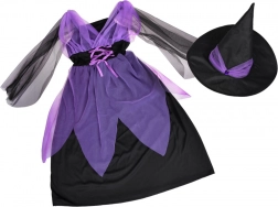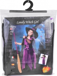Očarljiv otroški kostum čarovnice za noč čarovnic, pust in rojstnodnevne zabave. V kompletu so vijolično-črna obleka in špičast klobuk. Zaradi elastičnega materiala je kostum udoben, izstopa z učinkovitim tilom in vezanjem. Idealen za preoblačenja, šolske nastope in ustvarjalno igro. Udobno nošenje, čaroben videz in preprosto oblačenje bodo razveselili vsako malo čarovnico.