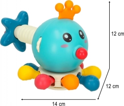 Ljubka modra hobotnica Bibi-Inn združuje senzorično igračo in grizalo v enem. Ponuja veliko možnosti za igro, podpira fino motoriko in senzorični razvoj zahvaljujoč različnim teksturam, barvam in gibljivim elementom. Izdelana je iz varnih materialov ABS in TPE ter ima kompaktne mere za otroške roke.