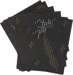 Svetlobni panel z mrežo odprtin omogoča enostavno vstavljanje prosojnih količkov in ustvarjanje sijočih motivov. Z priloženimi predlogami se lahko ravnate po pripravljenih vzorcih ali pa oblikujete povsem svoje kreacije. Tabla deluje na baterije 3× AA (niso priložene).