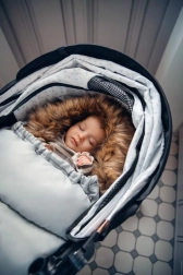 MoMi zimska vreča je dodatno opremljena z zadrgo za lahek dostop in univerzalni dezajnom, primerna za otroške sedeže, vozičke in sani.