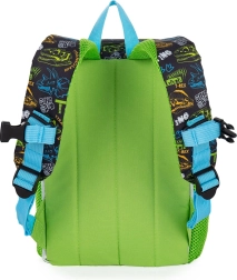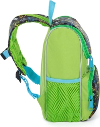 Lahek in udoben otroški nahrbtnik z motivom dinozavrov za vsakodnevno uporabo. Idealen za otroke od 3 do 6 let, ponuja prostoren glavni žep, sprednji žep za malico in stranski žep za steklenico. Za varnost poskrbijo odsevni elementi, za udobno nošenje pa prsni pas.