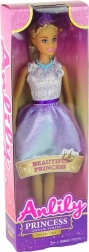 Odkrijte čar punčke Anlily v pravljičnem princeskinem slogu. Njeni bogati, rahlo valoviti blond lasje naravnost vabijo k ustvarjanju novih pričesk. Obleko z belim životcem in vijolično‑modrim krilom dopolnjuje bleščeča krona, ogrlica in visoki čevljički – vse popolno usklajeno za kraljevski videz.
