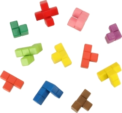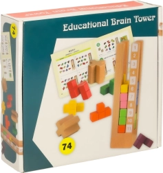Izobraževalna lesena sestavljanka je zasnovana tako, da spodbuja ustvarjalno igro in razvija logično razmišljanje in spretnost. Vključuje 11 kock različnih oblik in barv, ki jih morajo otroci natančno prilagoditi osnovi, kar spodbuja njihovo koncentracijo in koordinacijo oko-roka. Vključuje knjigo s 74 nalogami, ki ponuja različne izzive in otrokom omogoča stalno izboljševanje njihovih veščin. S tremi stopnjami težavnosti se ta sestavljanka prilagaja starosti in sposobnostim otroka, kar omogoča stalne izzive na vsaki stopnji razvoja.