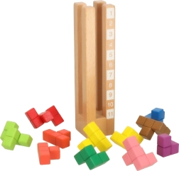 Ta lesena izobraževalna sestavljanka združuje zabavo z učenjem. Zaradi raznolikih barvnih kock in različnih težavnostnih stopenj pomaga razvijati logično razmišljanje in fino motoriko pri otrocih.