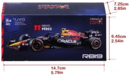 • Avtentična zasnova – zvesta replika RB19 s številko 11 in dejansko barvno shemo moštva.