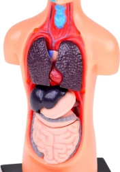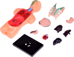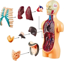 Ta podrobno izdelan anatomski model trupa omogoča nazorno spoznavanje razporeditve človeških organov. Zahvaljujoč odstranljivim delom (pljuča, srce, jetra, želodec, trebušna slinavka, tanko in debelo črevo, rebra) si zlahka osvojite njihovo lego in medsebojne povezave.