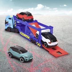 Realistična avtovleka VOLVO FH16 bo razveselila vse male voznike. Ponuja svetlobne in zvočne učinke, prosti tek za gladko vožnjo in prikolico za prevoz avtomobilov. Del pakiranja so 3 avtomobili VOLVO XC40 RECHARGE. Dolžina seta je 40 cm.