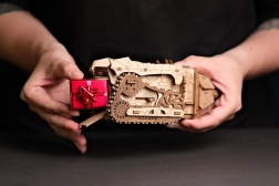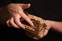Raziskujte edinstveno uganko, ki združuje elemente darilne škatle in sobe pobega. Izdelana iz kakovostnega brestovega lesa, ta model je vizualno impresiven in idealen za družinske zabave ali igro s prijatelji.