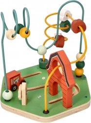 Ta barvit lesen labirint z kroglicami s kmetijsko tematiko ponuja veliko zabave in hkrati podpira razvoj pomembnih spretnosti pri otrocih. Otroci bodo z veseljem premikali kroglice po zavitih poteh ter odkrivali kmetijske elemente, kot sta traktor in kokoš. Izdelek je primeren za otroke od 18 mesecev dalje in zagotavlja varno igro, ki je hkrati bogata in poučna.