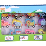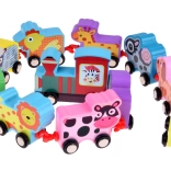 Iščete igračo, ki združuje učenje in zabavo? Ta leseni vlakec z živalcami je idealna rešitev za otroke že od 12 mesecev starosti. Sestavljen je iz lokomotive in desetih vagončkov, vsak okrašen z različnimi živalcami in opremljen z izstopajočimi barvami.
