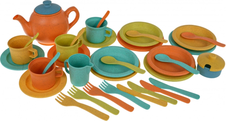 Leseni čajni servis za otroke s pladnjem in skodelicami