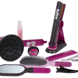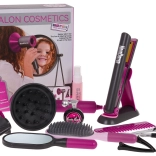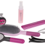 V pakiranju ne manjkajo praktični dodatki: škarje in redčilne škarje, glavnik, krtača, ogledalo, sponke, navijalke, razpršilo in steklenička za “parfum”, pa tudi stojalo za sušilnik ali likalnik. Komplet je odličen za razvoj fine motorike, kreativnosti in skupne igre.