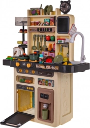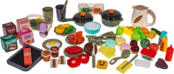 Del kompleta je tudi odstranljiva kredna tabla za dnevni meni, police in omarice za pregledno shranjevanje ter ura z gibljivima kazalcema za učenje časa. Bogati dodatki (posoda, pribor, živila in nalepke) spodbujajo razvoj domišljije, fine motorike in skupno igro.