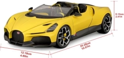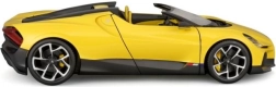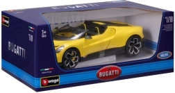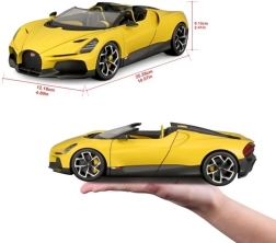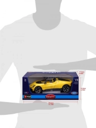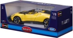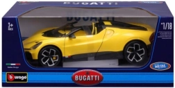 Ekskluzivni zbirateljski model v merilu 1:18 zvesto prikazuje ikonični roadster BUGATTI Mistral v privlačni rumeni barvi s črnimi poudarki. Natančna izdelava, premični deli in podrobna notranjost bodo navdušili ljubitelje superšportnikov in zahtevne zbiratelje. Kovinska karoserija s plastičnimi dodatki zagotavlja vzdržljivost in realističen videz, idealno za razstavljanje ali kot elegantno darilo.