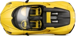 Zbirateljski model zvesto posnema aerodinamične linije in markanten sprednji del Mistrala. Rumeno lakiranje s črnimi elementi poudarja športni značaj in ekskluzivnost.