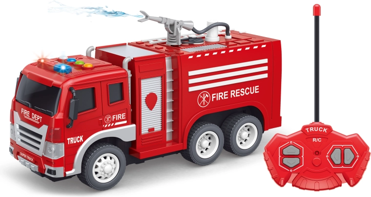 Uživajte v akcijski zabavi s tem realističnim gasilskim avtom na daljinsko upravljanje dolžine 27,5 cm. Model ponuja špricanje vode, svetlobne in zvočne učinke ter zanesljivo upravljanje na frekvenci 27 MHz – idealno darilo za male gasilce in ljubitelje RC modelov.