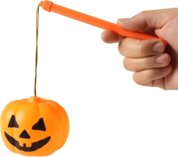 Ustvarite pravo vzdušje za noč čarovnic doma ali na zabavi s svetlečo bučo z ročajem. Plastična buča velikosti približno 10 cm se enostavno upravlja s stikalom in je pripravljena za uporabo, saj že vsebuje 3× baterije AG13/LR44. Idealna dekoracija in igrača zgolj z svetlobnim učinkom za otroke od 3 let.
