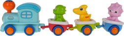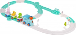 Ta interaktivna dinozavrska vlakovna proga bo v otroško sobo prinesla veliko veselja. Lokomotiva na 2× AA bateriji zasveti in zaigra melodije, medtem ko garnitura drvi po barvitih tirnicah. Vsak od 3 vagonov je mogoče preprosto odklopiti, figurice dinozavrov pa odstraniti za samostojno igro.
