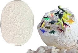 Jajce ima dimenzije 10 cm x 10 cm x 15 cm in vsebuje 12 dinozavrov.