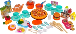 Kuhinijca vsebuje skupno 65 delov, kot so lonci, ponvice, imitacije živil in mnogo več. Ta komplet ponuja neskončne možnosti za ustvarjalno igro.