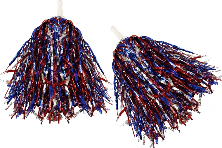 Pom-pom je izdelan iz rdečih, modrih in srebrnih trakov, ki dodajo energijo in živost vsakemu dogodku.