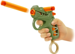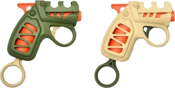 V paketu so pripravljeni trije mehki penasti izstrelki, na izbiro pa imate dve stilski barvi, zeleno in rjavo. Idealno za hitre dvoboje na vrtu ali doma, kjer boste cenili preprostost, kompaktne dimenzije in zanesljiv mehanski pogon.