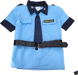 Slogoven otroški kostum policista za pust in maškarade v velikosti 110–120 cm. Vsebuje vse, kar mali varuh reda potrebuje: kapa, srajca, kravata, pas in hlače.