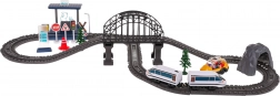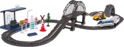 - Celovit set 76 delov – tirnice, vlak, postaja, most, tunel, TAKSI, znaki, drevesa in drugi dodatki.