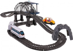 Del seta je tudi rumeni TAKSI z odpirajočo streho in odstranljivimi figuricami s premičnimi okončinami, zato lahko otroci ustvarjajo lastne zgodbe in prizore. Magnetno spajanje vagonov in avtomobilčka olajša rokovanje in spodbuja samostojno igro. Zaradi čvrstih spojev tirov je montaža enostavna, proga pa stabilna.