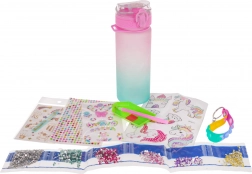 Material stekleničke je brez BPA in primeren za otroke. V paketu najdete tudi zanko/vrvico za enostavno nošenje, orodje za nanašanje kamenčkov in pregledne šablone. Odlična ideja za darilo za male ljubitelje jednorožcev.