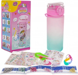 Spodbujajte otroško domišljijo s to ljubko stekleničko za vodo z motivom jednorožca in bogatim kompletom dodatkov. Otroci lahko stekleničko sami okrasijo s pomočjo nalepk in bleščečih kamnov. Steklenička je iz varnih, nestrupenih materialov brez BPA, ima enostavno odpiranje in je tesnjena. Idealna za otroke od 3 let – zabava, ustvarjalnost in hidracija v enem.