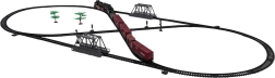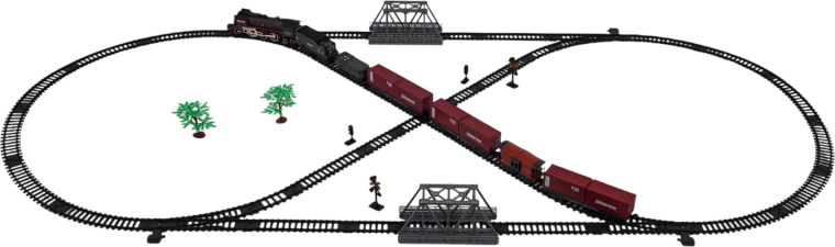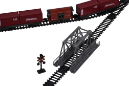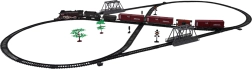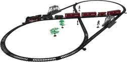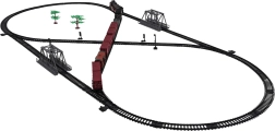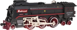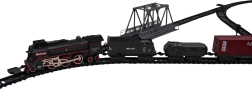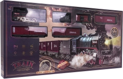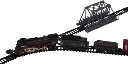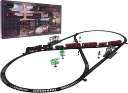 Retro vlakovna garnitura s funkcijo dima, zvoki vožnje in s priloženimi tiri je primerna za otroke od 3 let. Igrača je napajana z polnilno baterijo 3,7 V (vključena), daljinski upravljalnik pa z 2 x AA 1,5 V baterijama (nista vključeni). Daljinski upravljalnik je hkrati eno izmed vozil. Med vožnjo lokomotiva spušča dim iz dimnika in ob straneh (po polnjenju z vodo – vodna pipeta je del kompleta), poleg tega sveti žaromet na sprednjem delu. Tiri imajo preprost način povezovanja, zato so varni in čvrsti za uporabo.