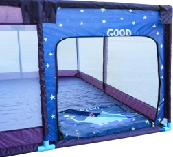Mehak pravokoten ogradek bo postal varno mesto za igro in počitek vašega dojenčka. Zaradi majhne teže ga zlahka prenesete tja, kjer ga potrebujete, doma v dnevni sobi ali na vrtu. Mrežaste stranice zagotavljajo odličen pregled nad dogajanjem v notranjosti in okolici ter optimalno kroženje zraka.