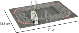 Električna dirkalna proga je razburljiva igrača, ki otroke popelje v svet akcije, poln dirk in policijskih zasledovanj! S to progo bodo vaši otroci del vznemirljivih dirk z upravljanjem dveh avtomobilčkov – črnega športnega avtomobila in policijskega vozila. Set vsebuje osem delov, ki po sestavitvi tvorijo progo s štirimi ovinki. Dva avtomobilčka se premikata po progi, otroci pa ju upravljajo z joystickoma ter natančno nadzorujejo hitrost vozil.