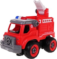 Interaktivni gasilski tovornjak za otroke od 3 let, ki ga je mogoče zlahka razstaviti in ponovno sestaviti s priloženim izvijačem in baterijskim vrtalnikom. Vključen je pametni panel, zahvaljujoč kateremu se vozilo lahko vozi naprej in nazaj samostojno ali na daljinsko upravljanje 2,4 GHz. Igrača iz kakovostne plastike ponuja zvočne učinke siren, premični izvlečni ramenski žerjav, odpirajočo se streho in gumijaste pnevmatike za boljši oprijem.