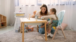 Stolček ponuja različice za malčke in starejše otroke zahvaljujoč snemljivim nogam, ki omogočajo nastavitev višine glede na potrebe.