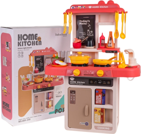 Ta interaktivna kuhinjica v živih barvah bo navdušila vsakega otroka. Zahvaljujoč osvetljenim gorilnikom in realističnim zvokom kuhanja ali cvrtja je igra maksimalno privlačna. Funkcionalna pipa z vodo omogoča izpiranje posode kot v pravi kuhinji, hkrati pa je mogoče odpreti tudi »hladilnik« s policami za shranjevanje živil.