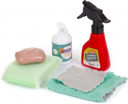 V kompletu je vse, kar otrok potrebuje za čiščenje – od metle in ročne metlice z zajemalko do krp in razpršila ter opozorilne table. Mere vozička 71 × 31 × 33,5 cm zagotavljajo udobno upravljanje tudi za mlajše otroke. Igrača je izdelana v skladu z evropskimi varnostnimi standardi.