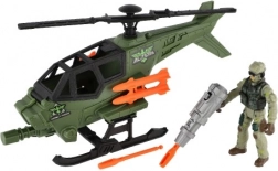 Ta realistični set otrokom prinaša vznemirljiv svet letalskih misij. Zeleni helikopter s črnimi rotorji in oranžnimi izstrelki, podrobno izdelana kabina ter premična figurica vojaka spodbujajo domišljijo, fino motoriko in timsko igro.