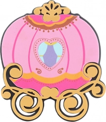Rožnata papirnata dekorativna kočija z izrezljanimi detajli je popoln dodatek za pravljično zabavo ali ustvarjalni projekt.