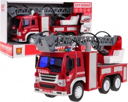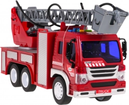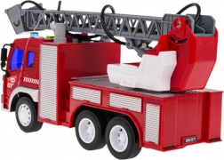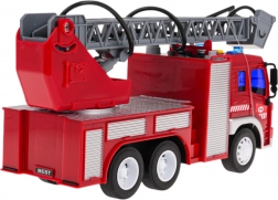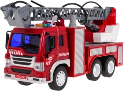 | Prevozno sredstvo: "Omrežno upravljanje". . | Interaktivni gasilski avto z zvočnimi in svetlobnimi učinki ter škropljenjem vode za otroke od 3 let dalje. Gasilski avto je izdelan iz najkakovostnejših materialov v živahnih barvah. Ima premične elemente, kot je nastavljiva lestev gor in dol ter možnost izvleka in skrajševanja. Na koncu lestve je platforma s končnikom gasilske cevi, iz katere teče voda. Na začetku prikolice je nameščen rezervoar za vodo. Ko je rezervoar napolnjen, je dovolj pritisniti gumb na zgornji strani rezervoarja in voda začne teči. Na strehi kabine gasilskega vozila so gumbi, po katerih pritisku se oglasijo sirena, troblja ali zvok vožnje vozila. Zvoki spremljajo utripajoče luči na gasilskem vozilu. Vozilo ima gumijaste pnevmatike in trenjski pogon na sprednji osi. Napajanje: baterije AG13 (priložene). .. Funkcije vozila: . - primerno za otroke starejše od 3 let, .- izdelano iz zelo kakovostnih materialov, .- merilo 1:16, .- premični elementi: izvlečna lestev gor in dol, izvlečna in zložljiva lestev, .- roka žerjava se vrti za 360 stopinj, .- voda teče iz gasilske cevi, .- trenjski pogon sprednjih koles, .- gumijaste pnevmatike, .- svetlobni učinki: utripajoče luči na strehi vozila, .- zvočni učinki: sirena, troblja ali zvok vožnje vozila. . |