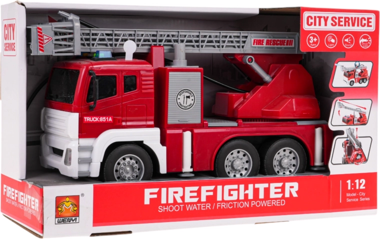 To interaktivno gasilsko vozilo je popoln igralni partner za otroke, ki imajo radi akcijske igre. Vozilo je narejeno iz visoko kakovostnih materialov in pritegne pozornost z živahnimi barvami. Zahvaljujoč gibljivi in nastavljivi lestvici, gumijastim pnevmatikam in funkciji pršenja vode, je igra maksimalno realistična in zabavna. Avto je gnan s trenjem na prednji osi in je opremljen z učinkom svetlobe v kombinaciji z zvočnimi signali, ki simulirajo pravo intervencijo.